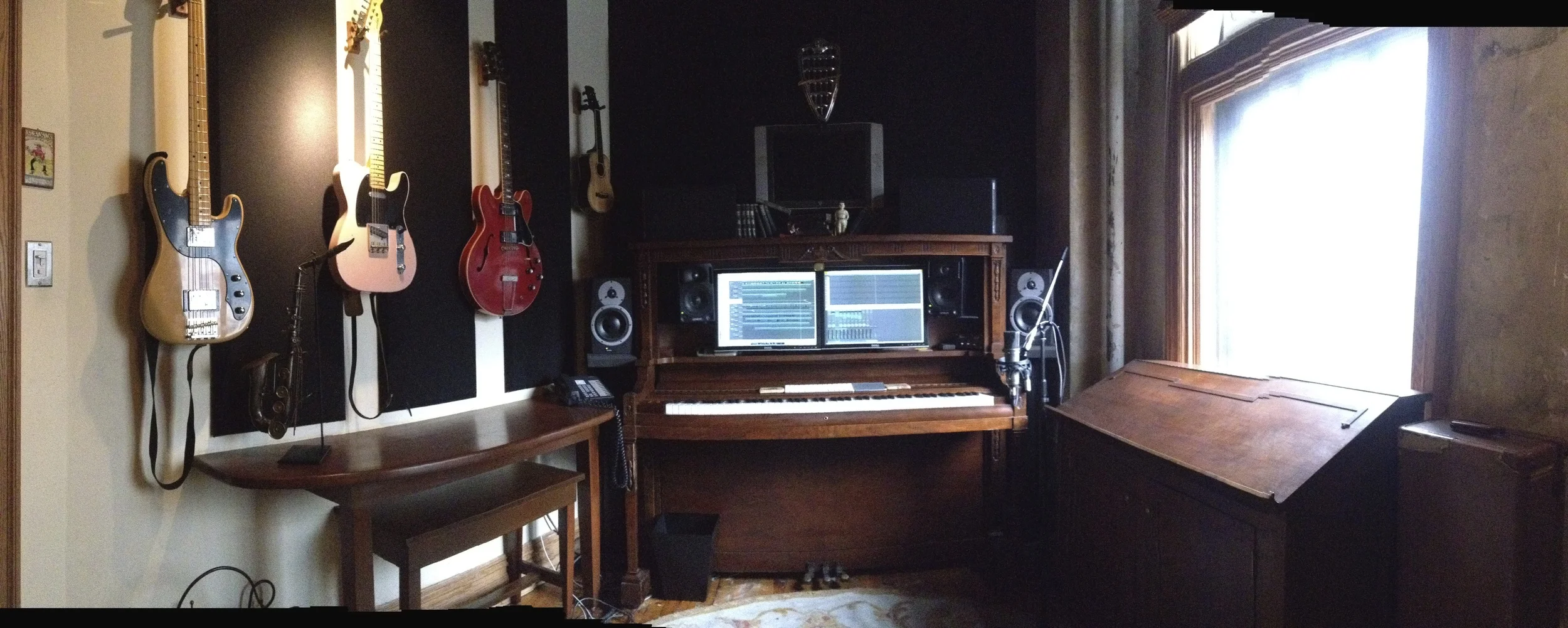 Our most notable projects are our modified piano workstations, in which we transform the carcass of an old piano into a functional composer's workstation. These desks are equally at home in your studio as your living room or parlor and offer an inspiring, highly ergonomic place to write and record music.